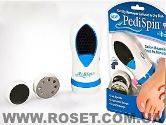 Електронний прилад Pedi Spin. допоможе позбутися від мозолів і шкірних наростів на ногах, від грубої, пересушеною або відмерлої, жорсткої шкіри. Для того щоб шкіра Ваших ступень придбала м'якість і ніжність, необхідно використовувати педікюрний набір