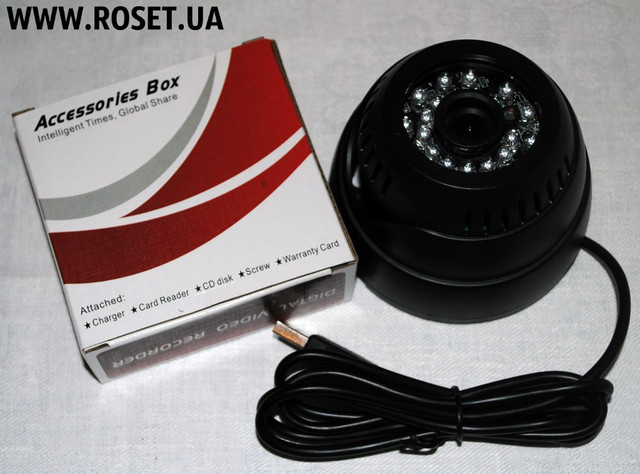Корпус камери відеоспостереження Digital Video Recorder-TF card має куполоподібну форму, і досить компактні розміри (легко поміщається на долоні дорослої людини) і при встановленні її в куті на стелі, легко зіллється з інтер'єром і буде непомітною для ока стороннього людини. Виготовлена з міцного, але легкого, ABS-пластика, так що навіть при неправильному монтуванні і падінні не розіб'ється.