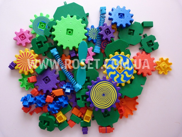 Розвиваючий Дитячий конструктор - Magic Gears включає в себе як будівельні блоки, з пазами для закріплення (ніяких болтів, гвинтів і пружин) та безліччю шестерень, в загальній складності 81 одиниця різних деталей. Можна зібрати побудувати, скласти ланцюжок рухомих деталей різних форм і принципом руху.